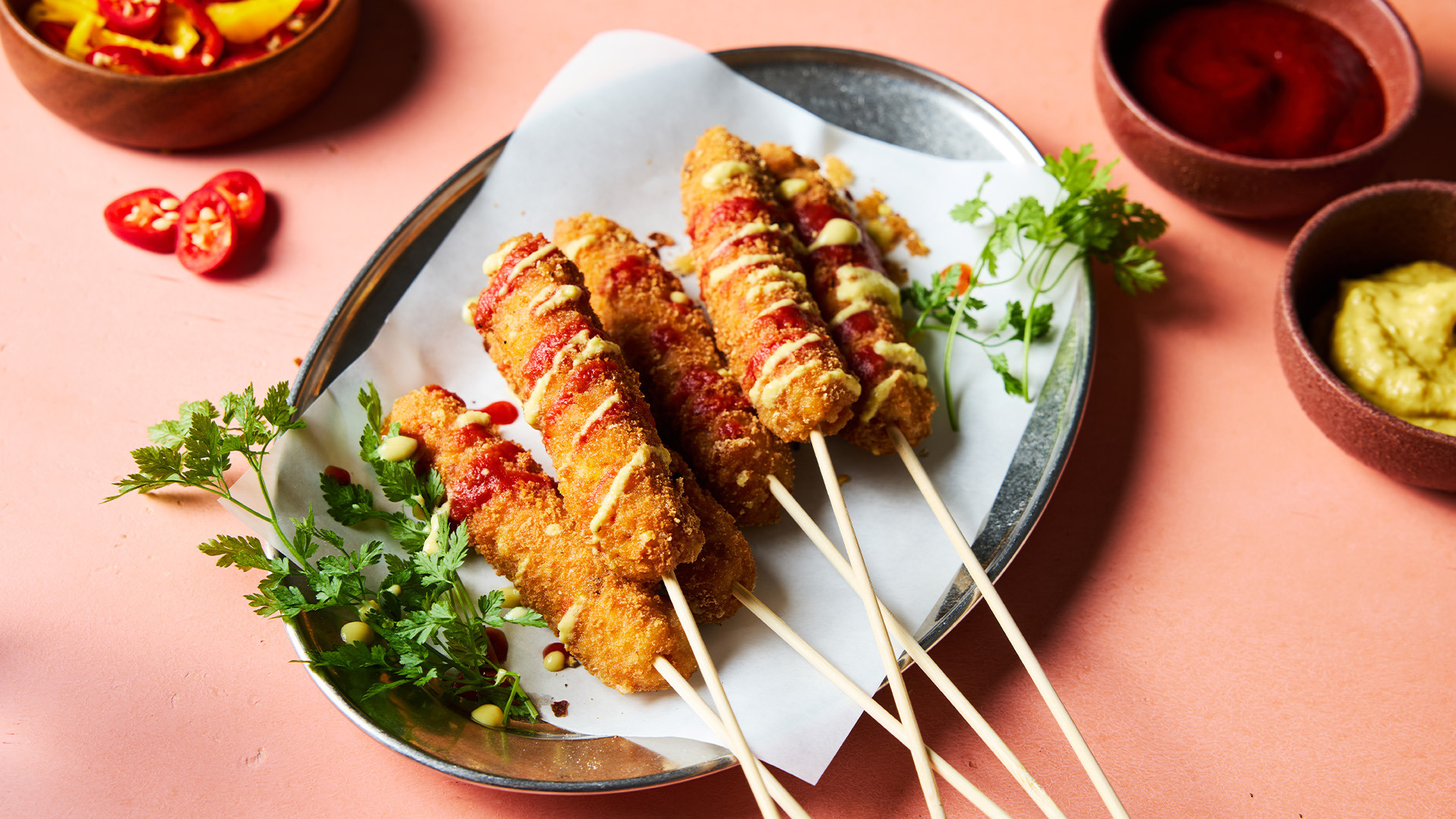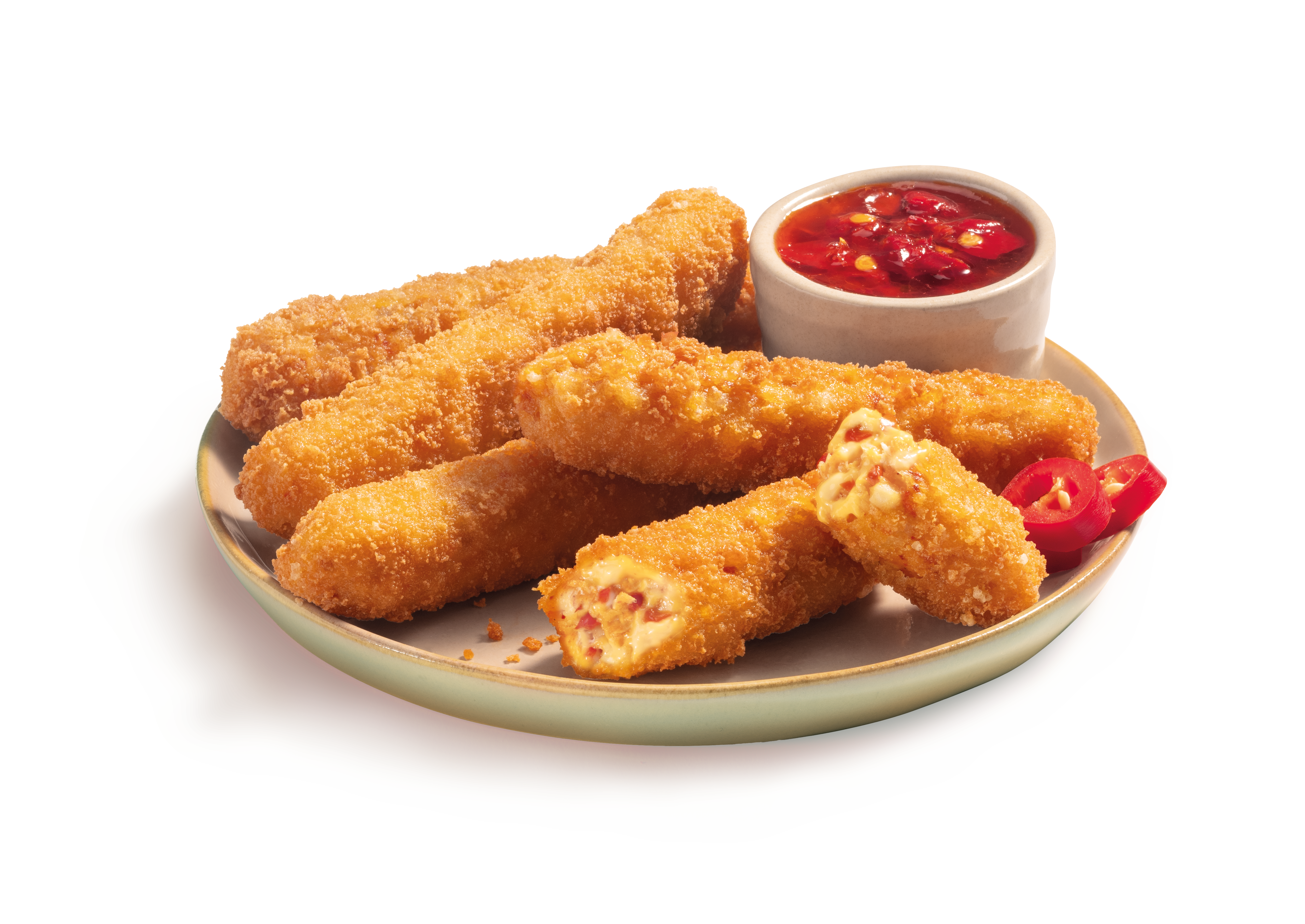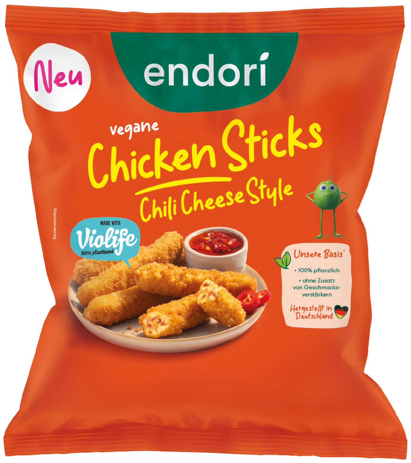 Unsere veganen Chicken Sticks Chili Cheese Style sehen zwar unschuldig aus, doch sie haben’s faustdick hinter der Panade! Die feurig-scharfe Mischung aus saftigem Chicken und cremiger Käsealternative in knuspriger Panade machen sie zum Traum-Snack für alle, die scharf auf lecker sind! Easy: knackig-pur aus dem Airfryer. Mit oder ohne Dip, von Guacamole bis Curry. Krümeln ausdrücklich erlaubt!