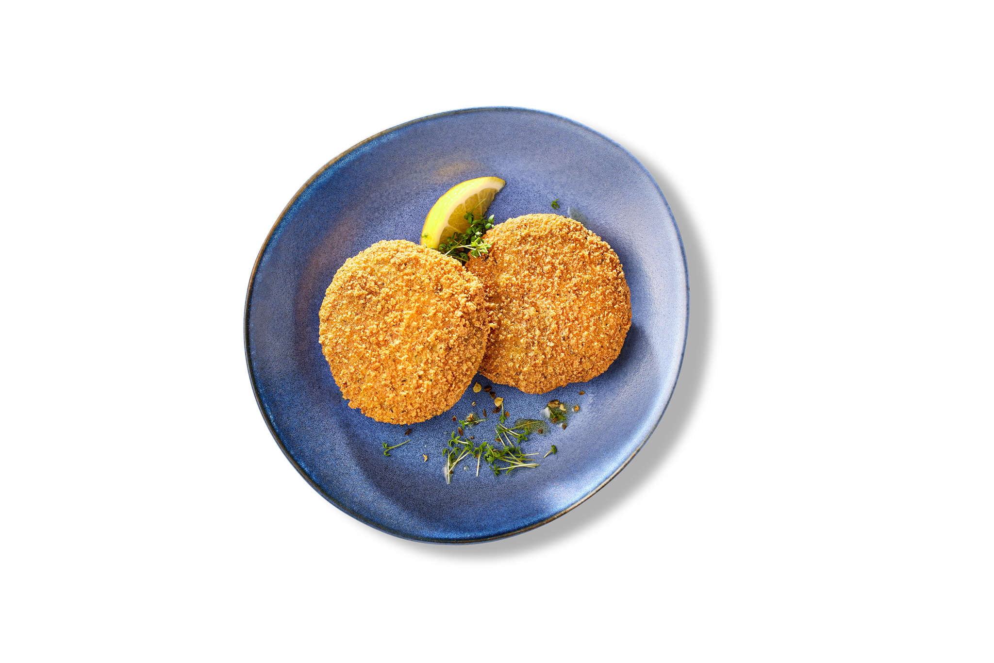 Wasser, Kräuterpanade (Reismehl, Wasser, Stärke, Kichererbsenmehl, Maismehl, Petersilie, Thymian, Speisesalz, Rapsöl, Dextrose), Rapsöl, 7% texturiertes Weizenprotein (WEIZENPROTEIN, WEIZENMEHL), 6% Erbsenproteinisolat, WEIZENHALMFASER, Branntweinessig (AT: Weingeistessig), Verdickungsmittel: Methylcellulose; Speisesalz, 0,9% WEIZENGLUTEN, Leinöl, Gewürze, glutenfreies HAFERVOLLKORNMEHL, Flohsamenschalen, Erbsenfaser, Kräuter, Zitronensaftpulver (Glukosesirup, Zitronensaftkonzentrat), Dextrose, Zitronenschalen, natürliche Aromen.