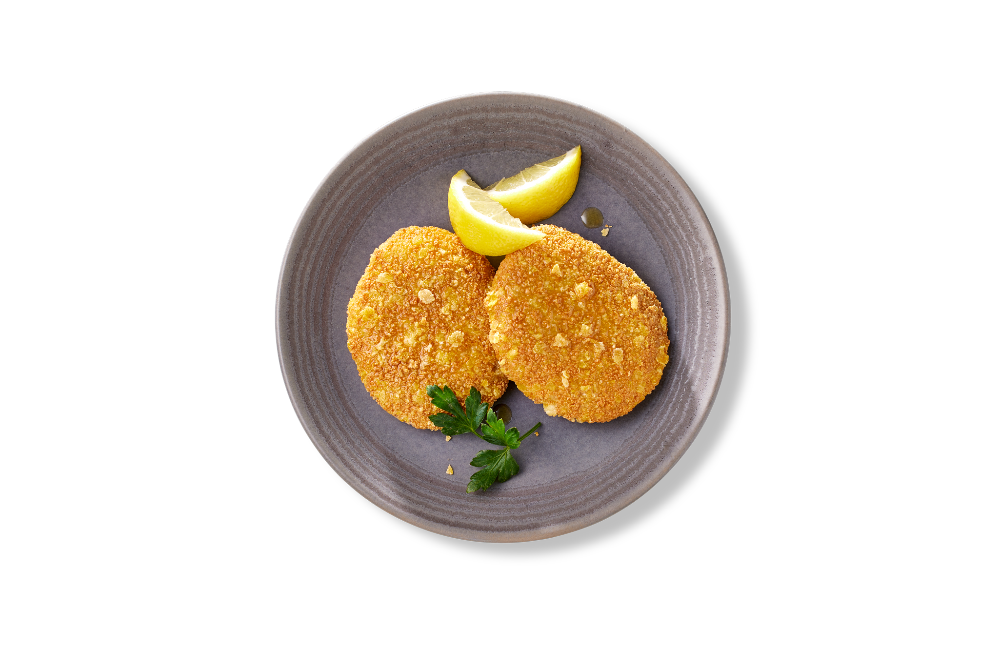 Goldgelbe Panade, saftig und knusprig im Biss.